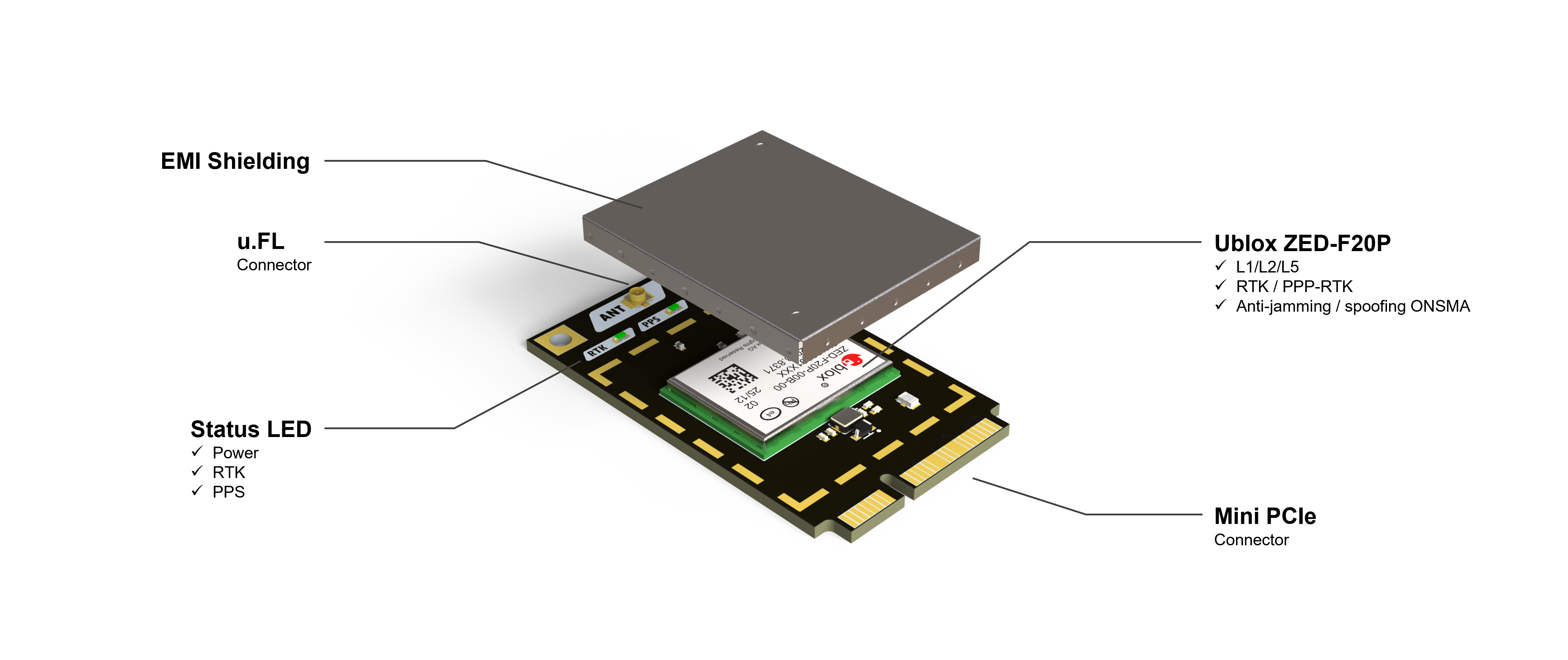 Triple-band L1/L2/L5 ZED-F20P GNSS RTK module